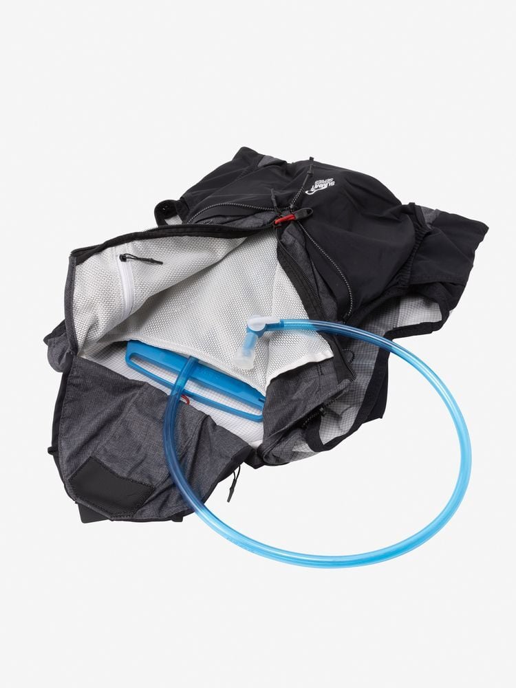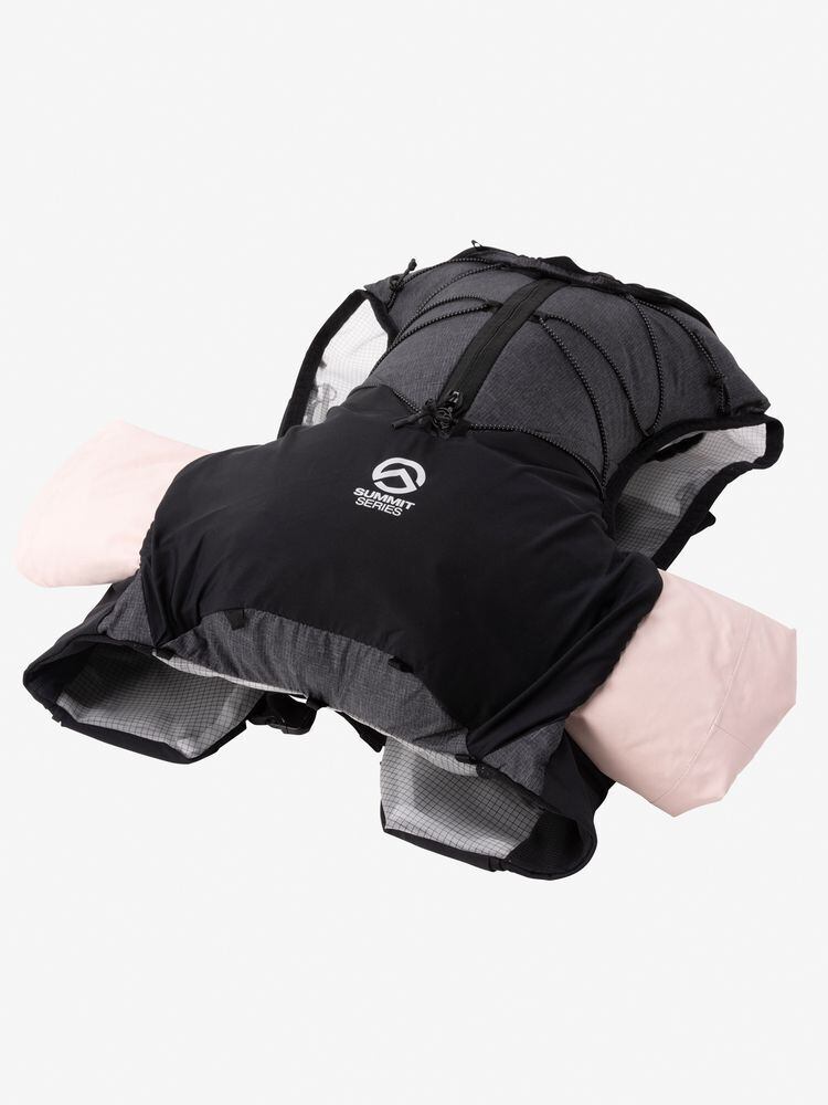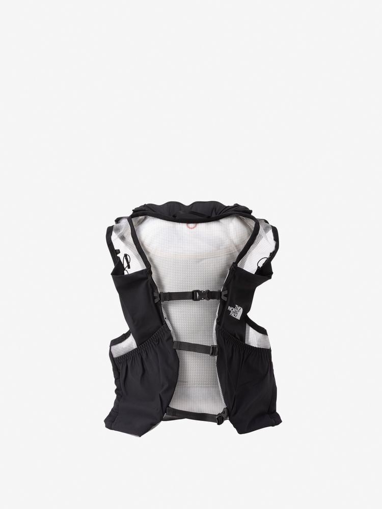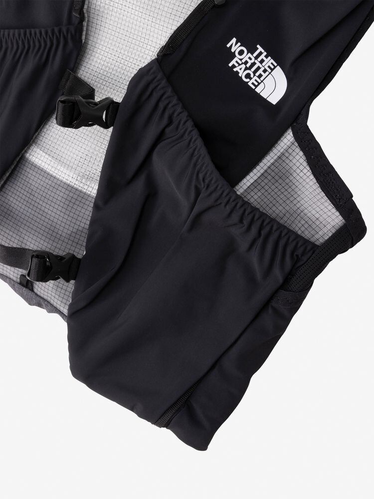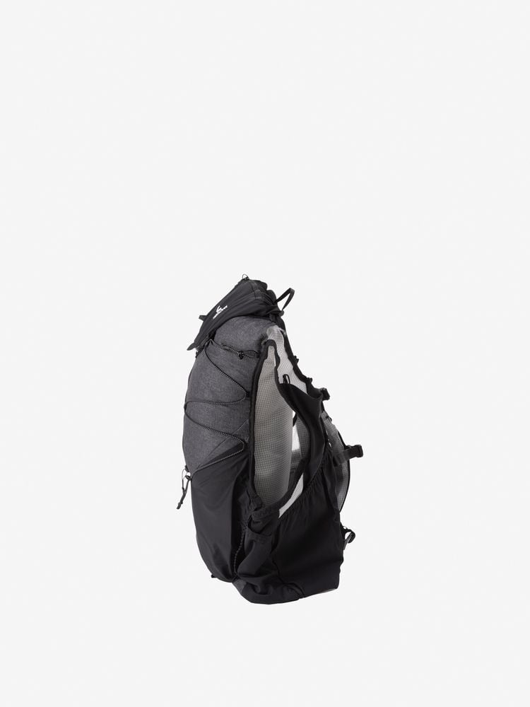 ショルダーハーネスにボトルポケットと、補給食やグローブなどをまとめて収納しやすい大型のスリットポケット、両サイド脇下のストレッチスリットポケットを装備。本体下部のストレッチポケットには、レインジャケットなども収納可能で、背負った状態でもアクセスしやすい設計。本体上部のフラップには走りながらでも収納可能な引手の長いファスナー付きポケットを備えています。本体をコンプレッションできるバンジーコードを設け、荷物の容量に応じてフィット感の調節が可能。防寒着やレインウエア、エマージェンシーキットなどが必要なショートからミドルレースにおすすめです。