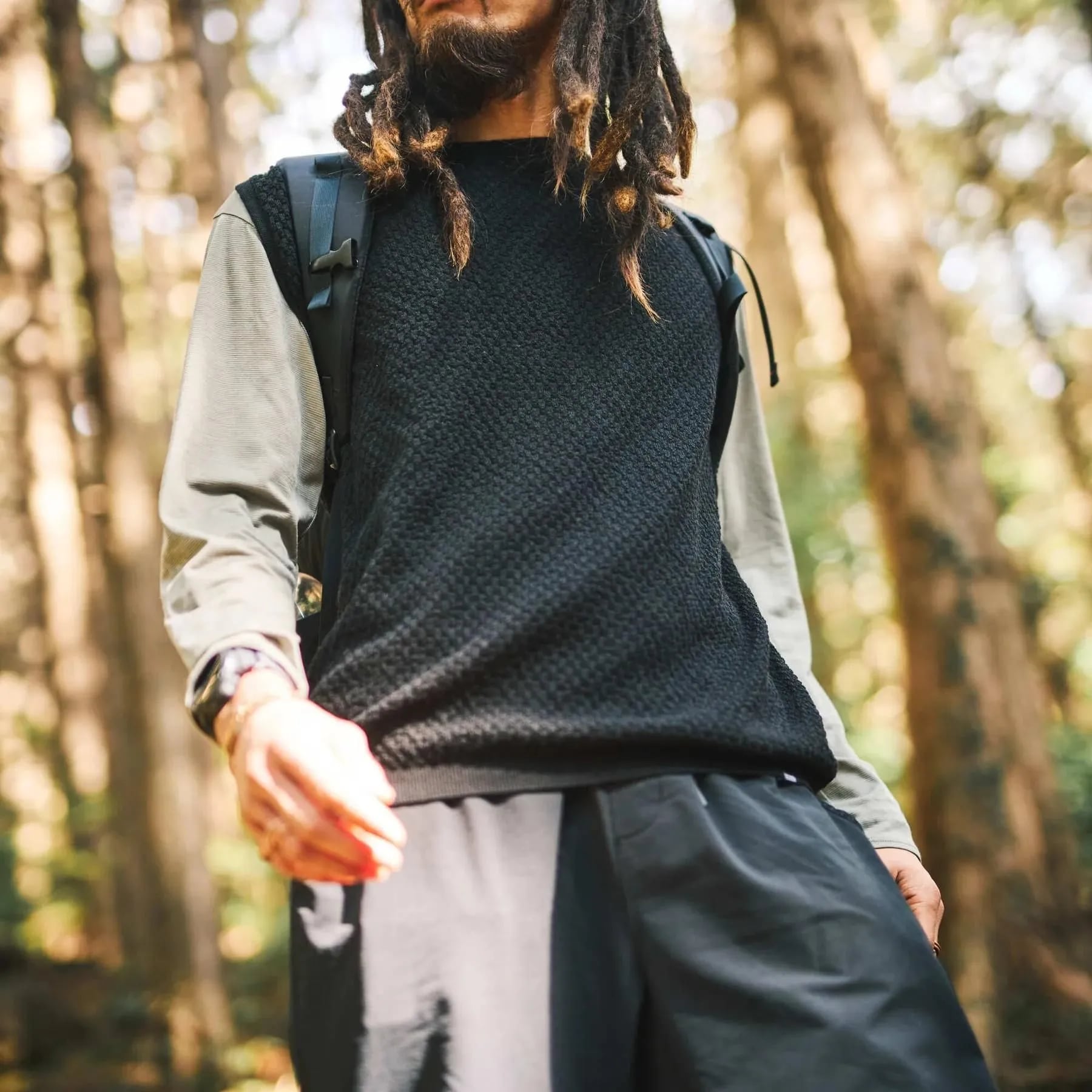 暑かったり。寒かったり。そんな季節の変わり目に活躍します。行動時に腕周りが暑くなりすぎず、アウターの中に着こめば、しっかりと身体を温めてくれます。